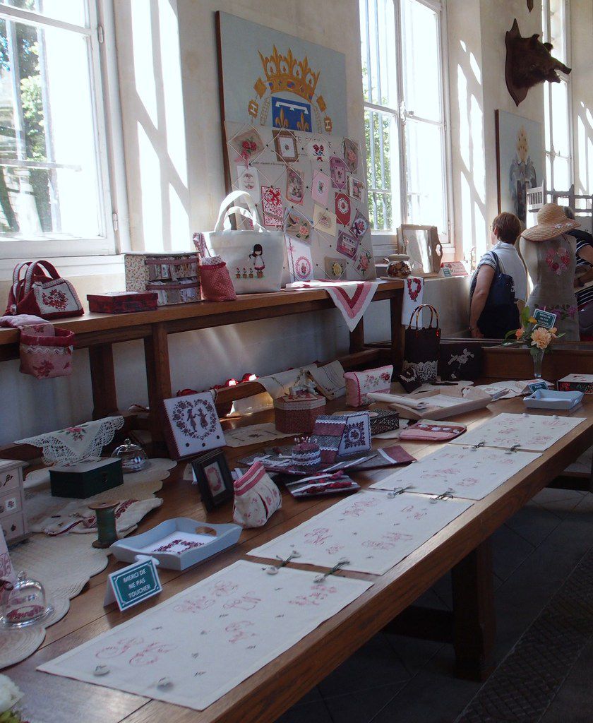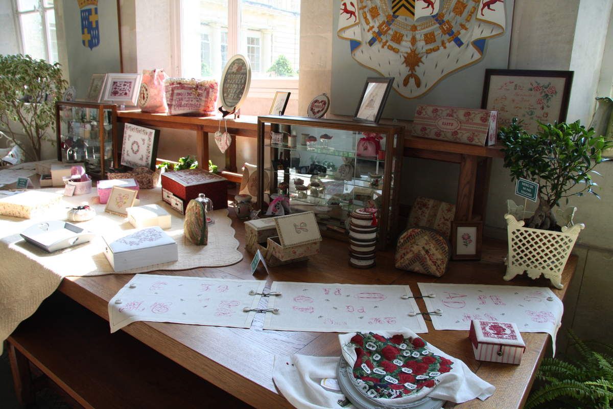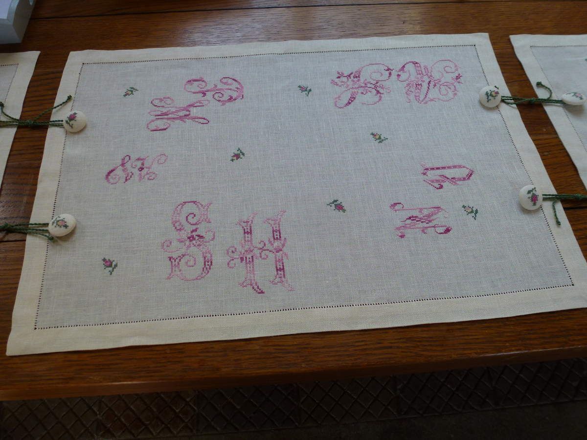 de couture (coupe, ourlets à jours avec coins en onglet),